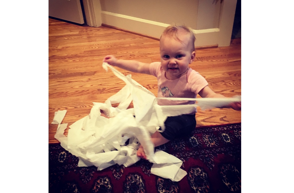 My first thought when I found that Miss O had discovered the fun of unrolling toilet paper – is it recyclable or does it go in the food and yard waste bin? I’ve lived in Seattle for a long time…