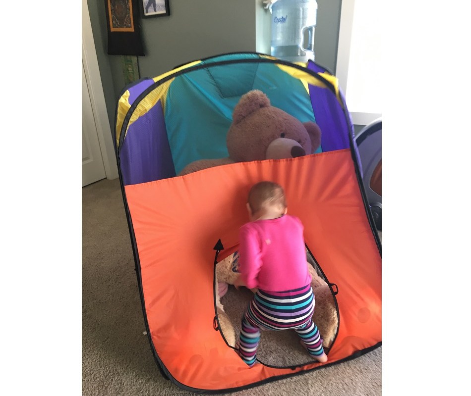 Miss O runs headlong into a tent with a huge bear in it. I think some wilderness training is in order!