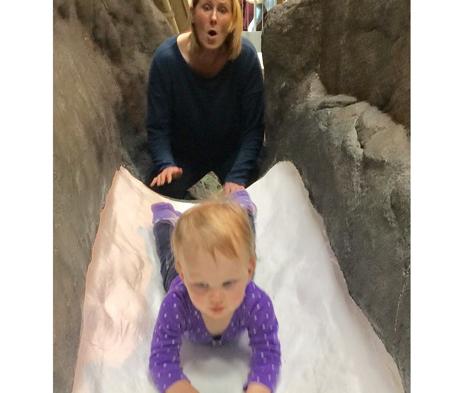 The moment I knew my parenting had gone wrong and my child was going down the slide head first! Thank you, Jill Jones, for the picture and for catching Miss O!