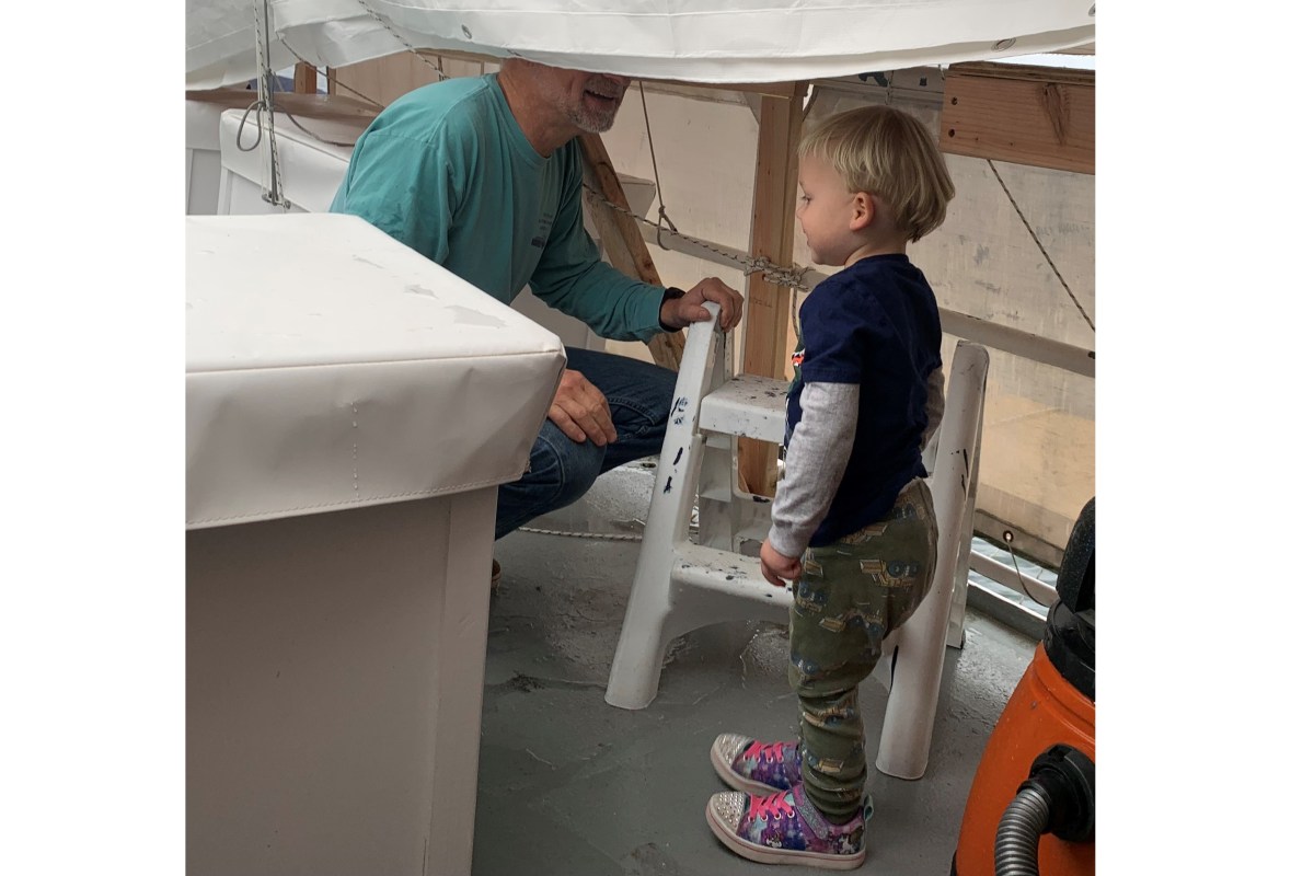 My 2-year-old loves to wear his sister’s shoes that have sparkly toes that light up when you walk. They are 4 sizes too big for him but once he gets his feet into them, he somehow commits to keeping them on.