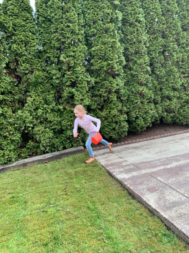 Oh my goodness – I’m laughing. Mr. D is not that tall! ๐ We had multiple egg hunts. That is the playhouse in someone else’s yard and it is so cool (a playhouse with a porch?) that it makes the one in our yard pale in comparison!