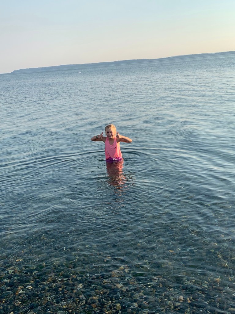 A friend joked this week that the Pacific Northwest might be one of the few places where climate change has improved our weather. After spending a couple of beautiful 75 degree October days at the beach on Whidbey Island, I have to agree that the weather was awesome. Although I still thought it a little too cold for Miss O to be in Puget Sound, she apparently thought differently.