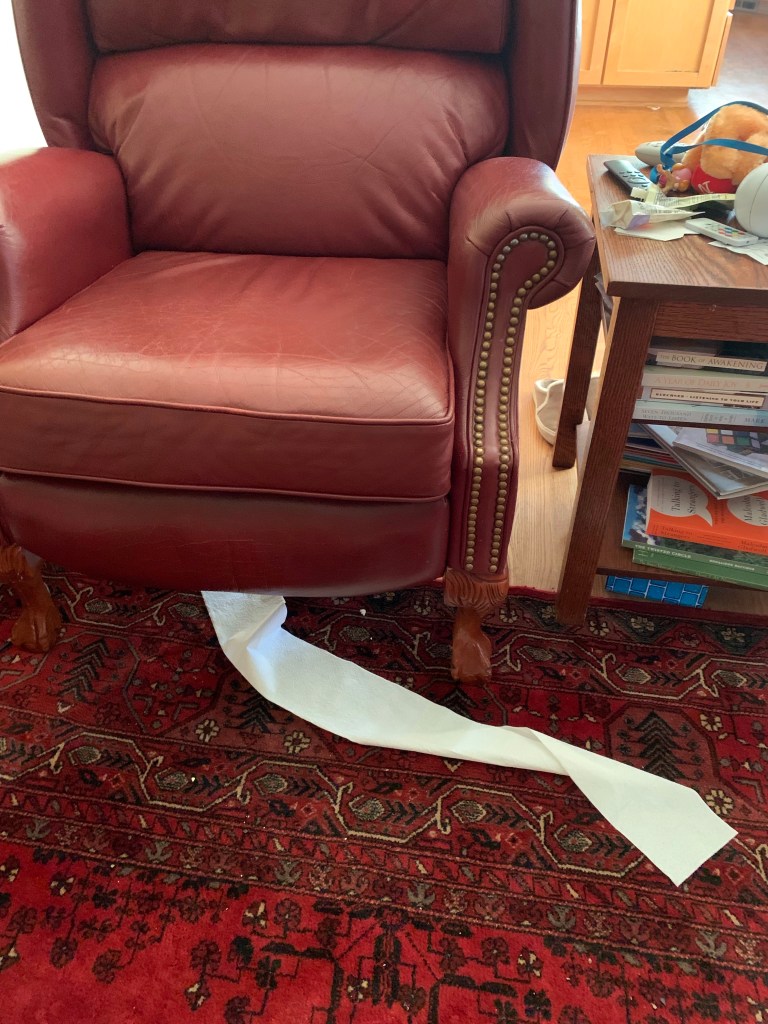 You know what’s worse than finding a half a roll of toilet paper unfurled in the family room? Finding a whole roll unfurled! And that perspective is what saves my sanity as I roll up the half roll of toilet paper.