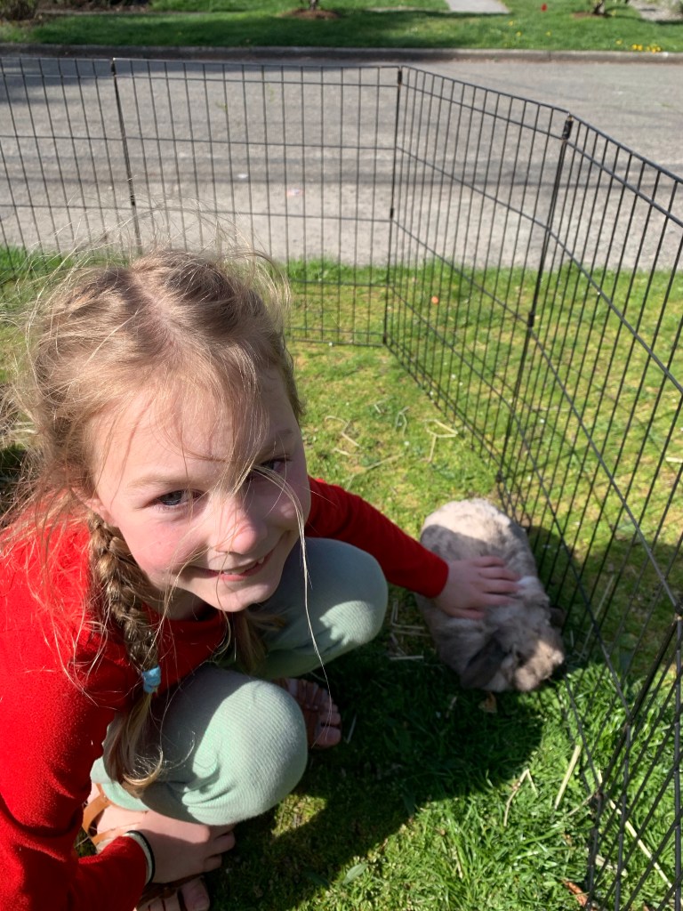 Speaking of bunnies and chicks, we were out visiting our neighborhood animal celebrities. Daisy and Hopper, the bunnies and the ducks, PJ & the New Guy – which isn’t really the duck’s name but seemed like an apt substitute.