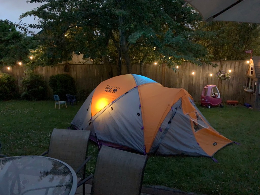 How is it that I never realized that my tent can fit two twin mattresses until this year? I totally should have thought of it the year Miss O and I did a backyard campout when I was 8 months pregnant with Mr. D. Sure, it would have been awkward carry those up to some of the places I’ve used the tent, but it’s way more comfortable! And it works great for the backyard.