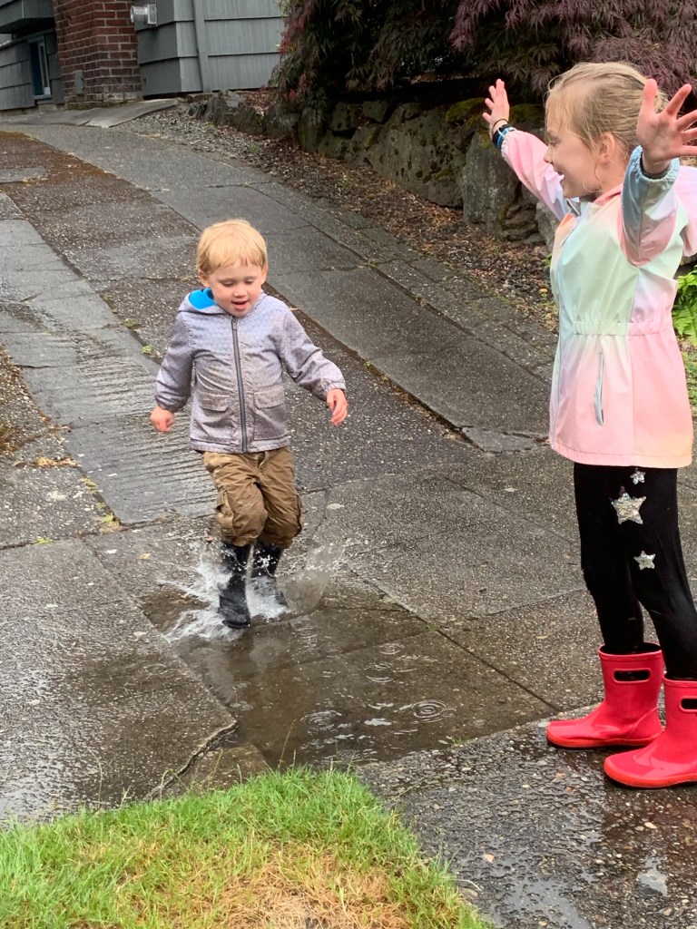I can’t claim that we don’t jump in puddles when it’s cold out — but it is WAY more fun when it’s warm out!
