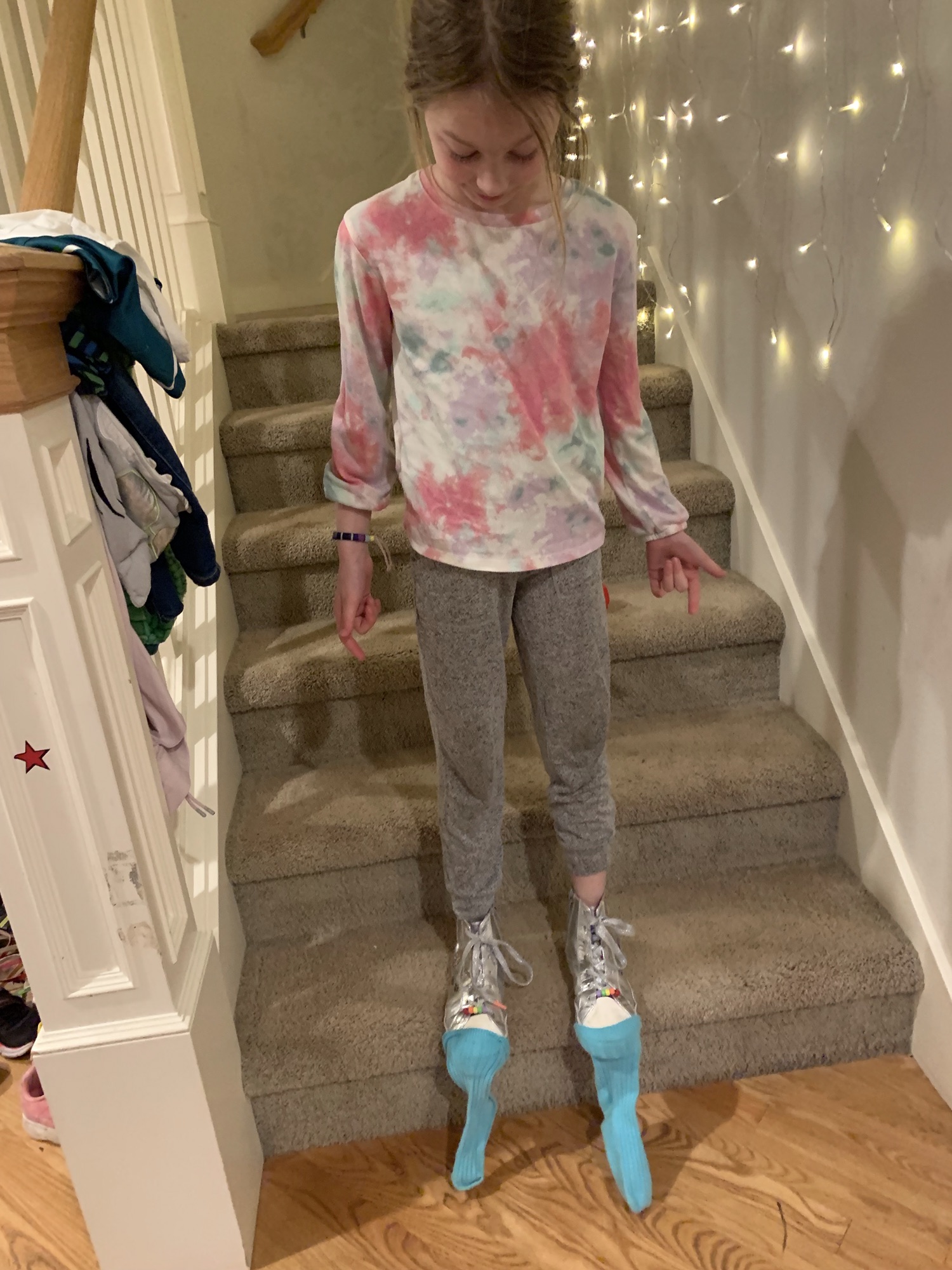 First picture here is a little random except for anyone that remembers Mark Petruska’s hilarious post Sock-Sock-Shoe-Shoe. Miss O, unprompted by me, announced she was a shoe-shoe-sock-sock girl.