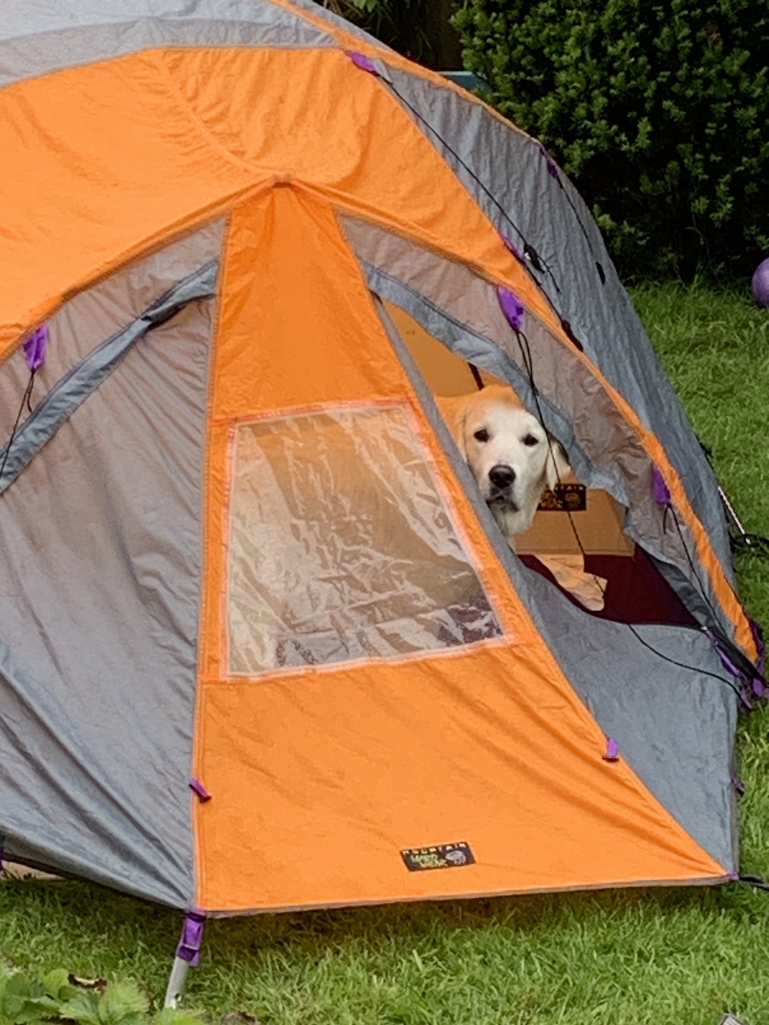 The Memorial Day weekend backyard campout. Cooper can’t figure out why he isn’t invited in the tent inner sanctum.