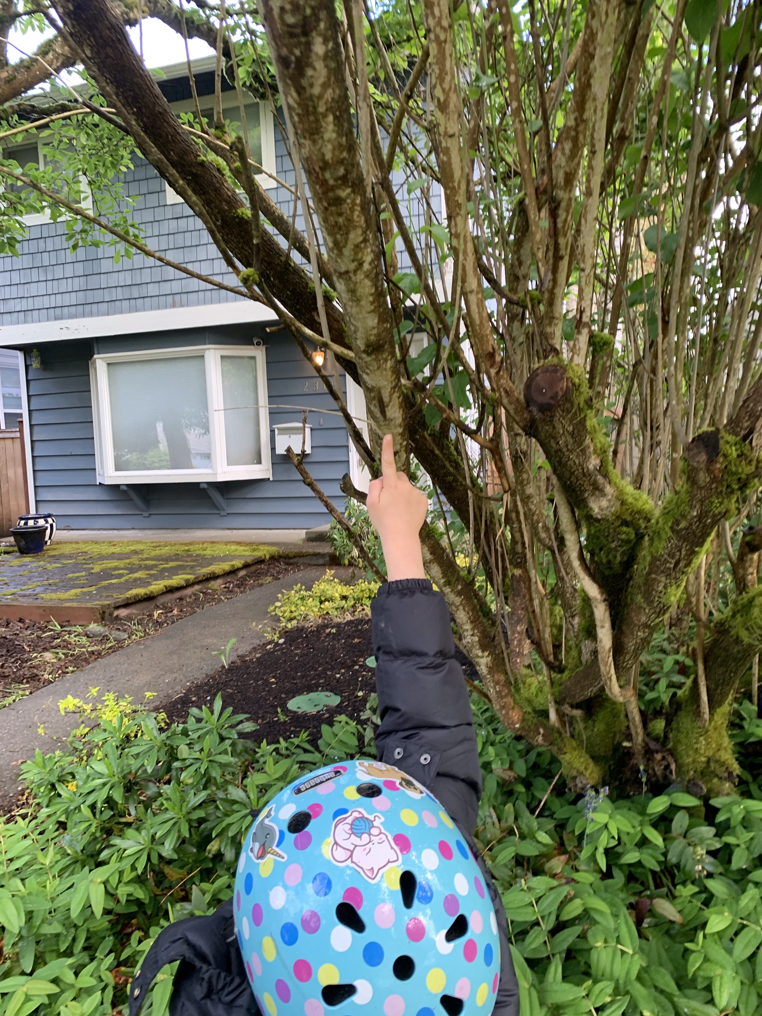 Mr. D has been showing me the fun sights in the neighborhood near his school. It amazes me how little kids see things like slugs in trees that are well above their heads and completely unnoticeable to me. Sharp little eyes.
