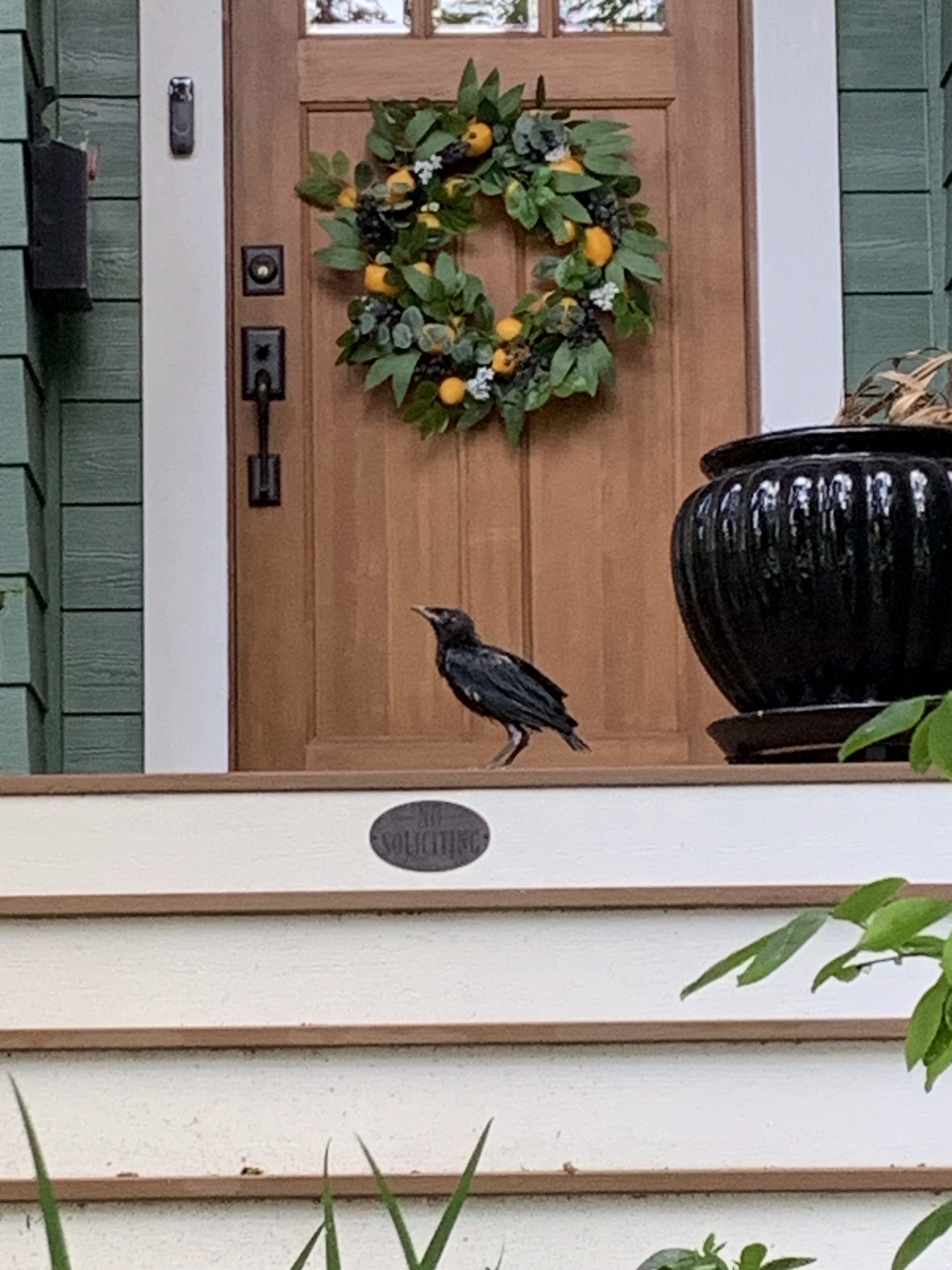 1. I swear the kids grow…so much…from week to week. Gah! Slow them down! And the crow? Did I spy…with my little eye…the tiny crow defying the “no solicitors” sign, just below where he proudly stood? 😜