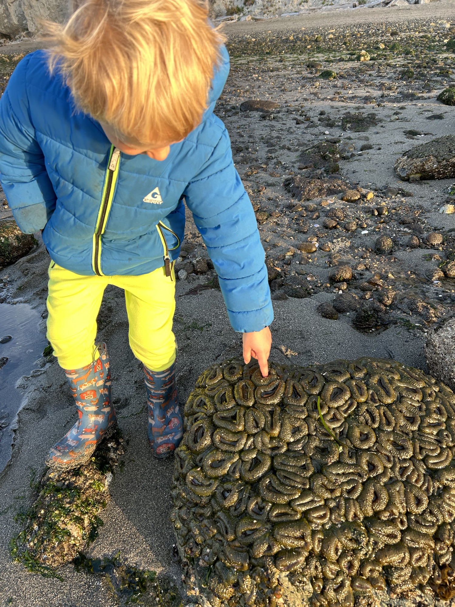 What’s Mr D pointing at? My first thought was a pile of poop but it looks like some sort of sea vegetation?