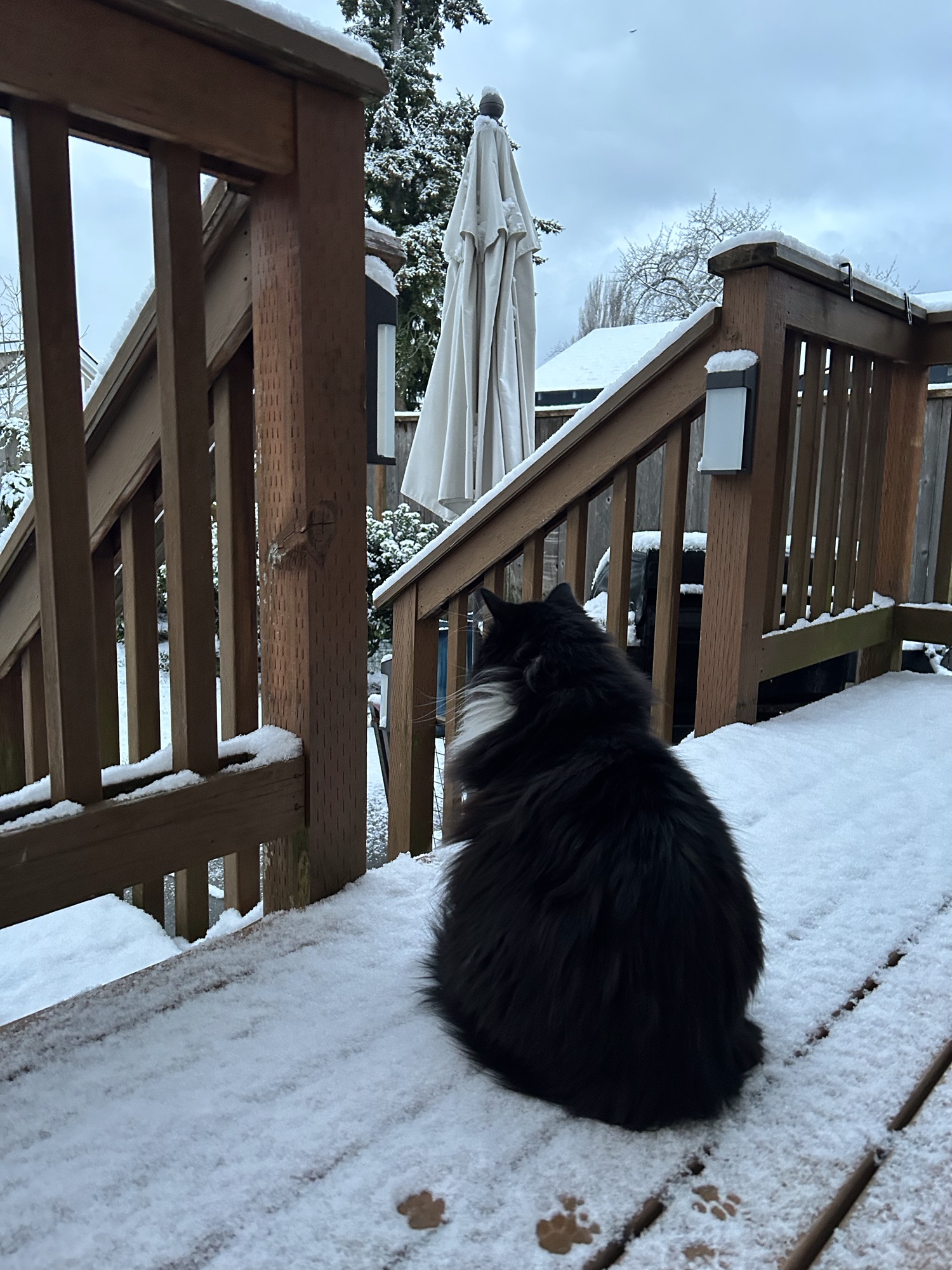 Then we came home and had a week with snow in Seattle. Even the pets thought it was pretty cool. Well, the cat doesn’t think anything is that awesome (because she’s a cat), but she did at least go out in the snow.