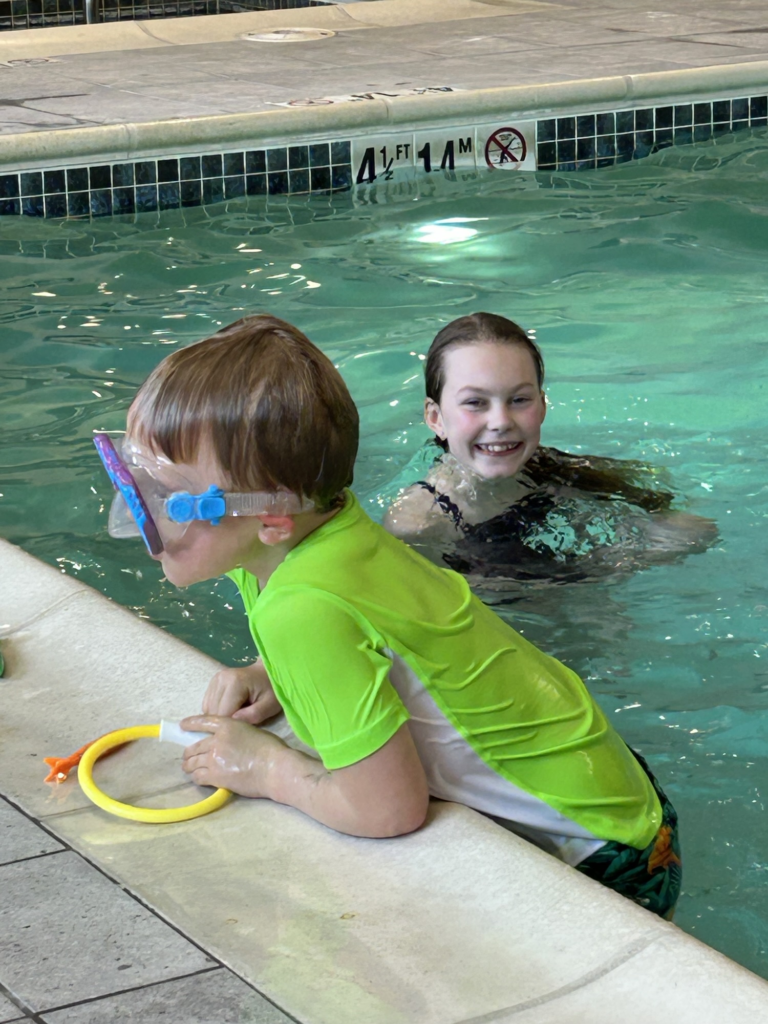 It’s hard to choose a favorite between the look of pure joy on Miss O’s face in the pool and Cooper’s look of concentration as he reads the book with Mr D. 😊