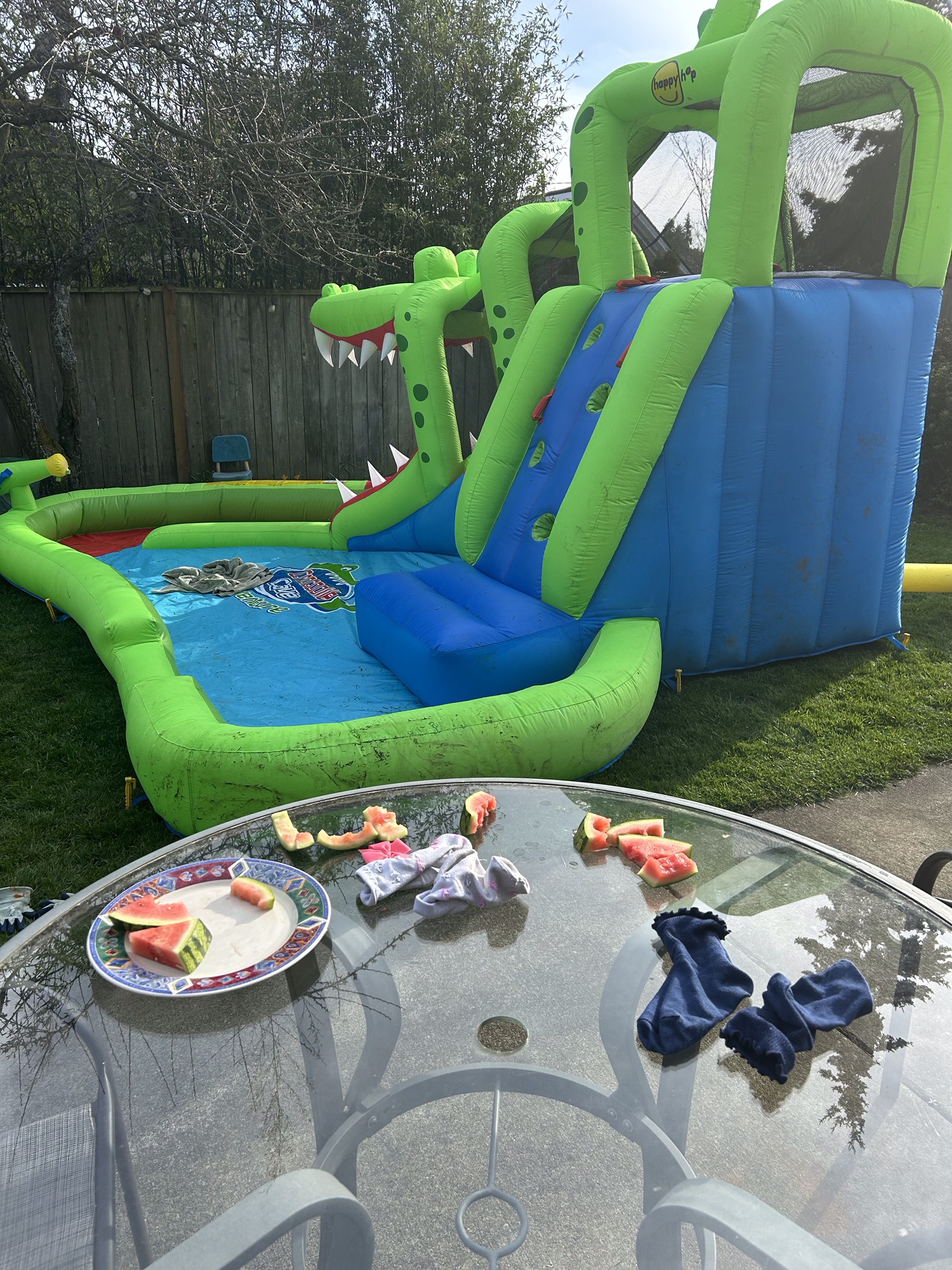 Discarded socks and watermelon rinds. And Mr. D reading to Cooper who was a dog-gone good audience!
