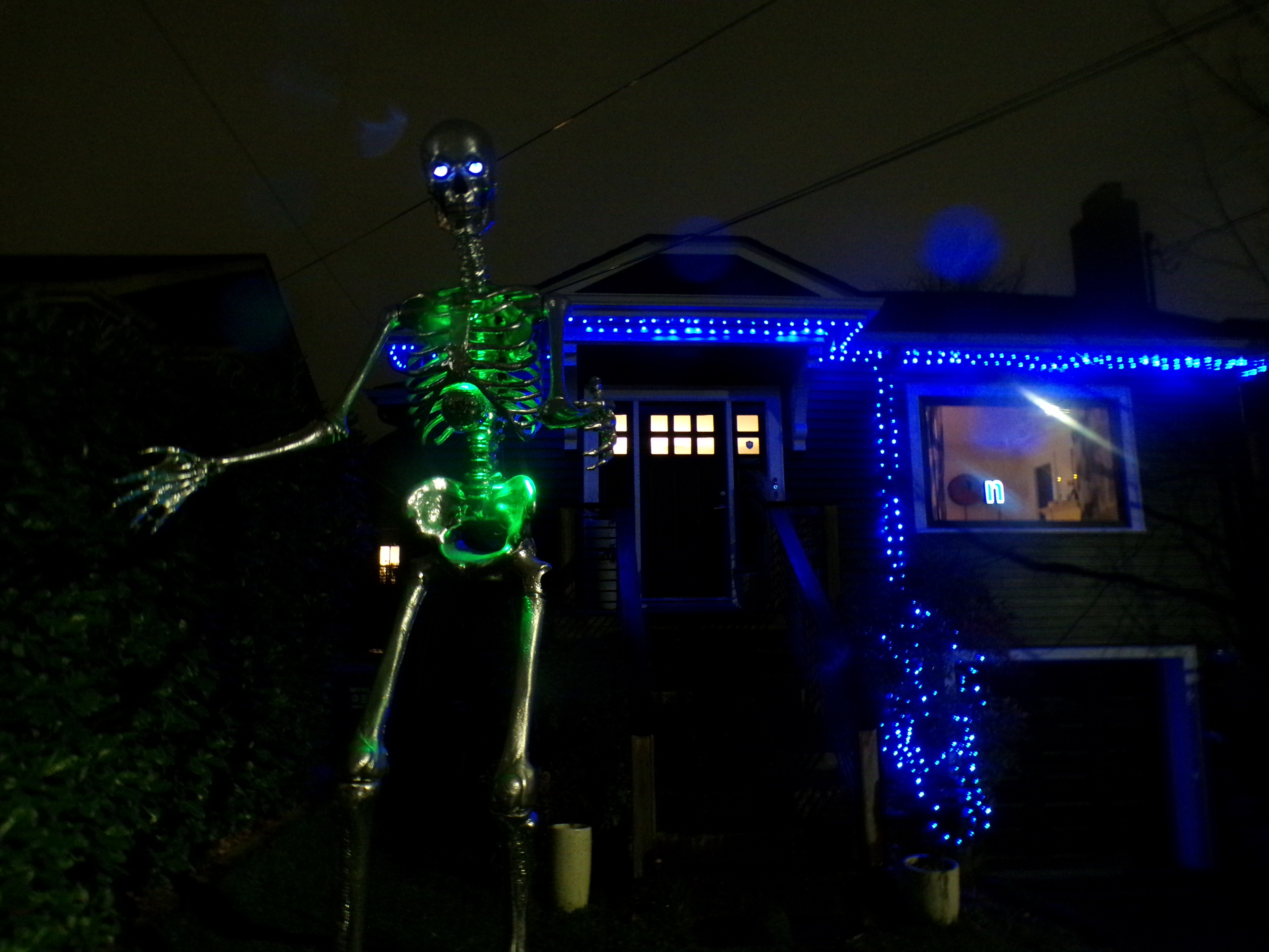 It seems there is a strong Seahawks color trend in the neighborhood. Even the skeleton has gotten into the theme.