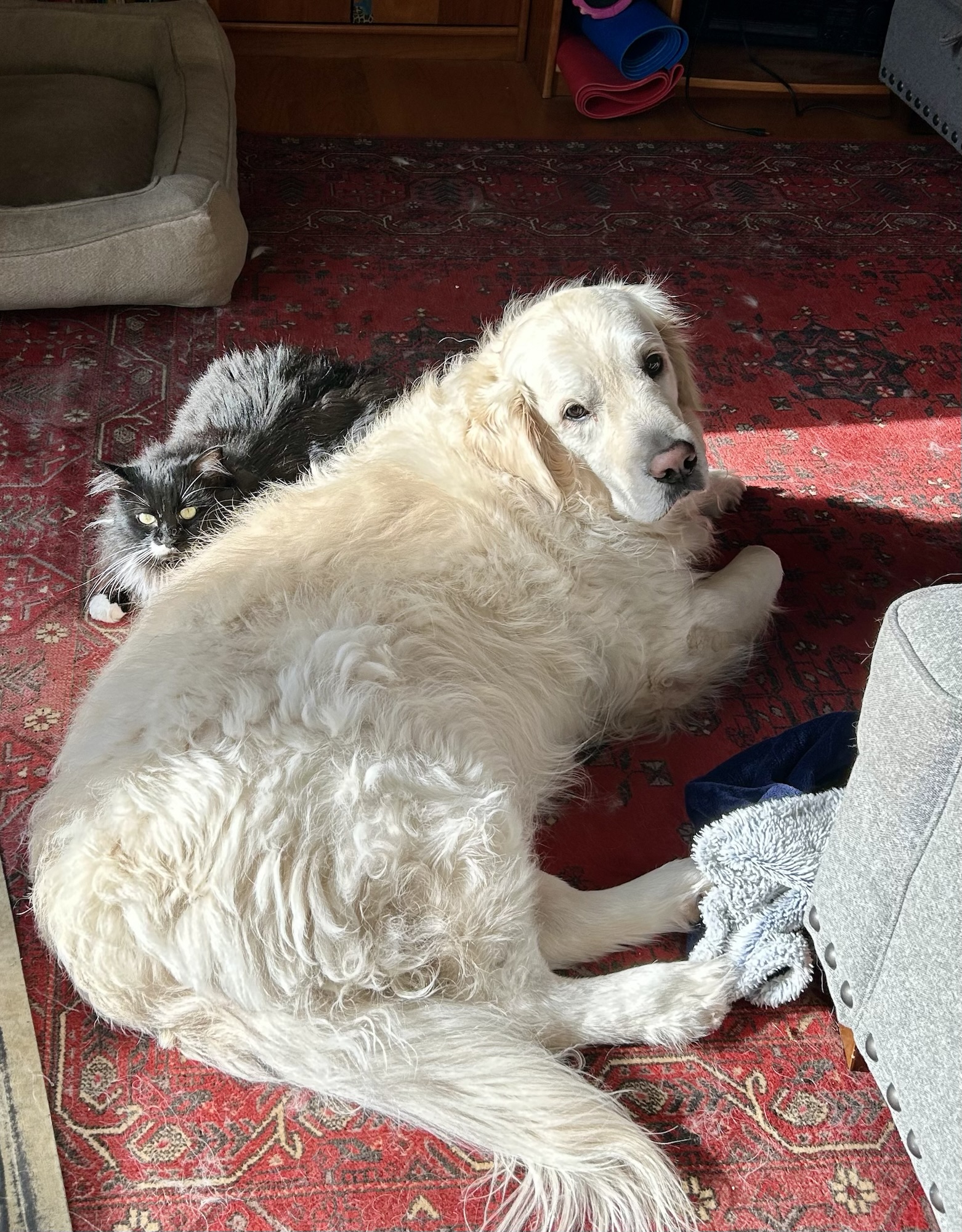 Cooper, Simone, and Rusty were sharing sun spots. Well, not Rusty – he was in his own spot!