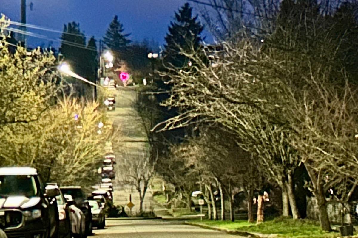 (featured photo is a red heart that provides a beacon of hope in our neighborhood)