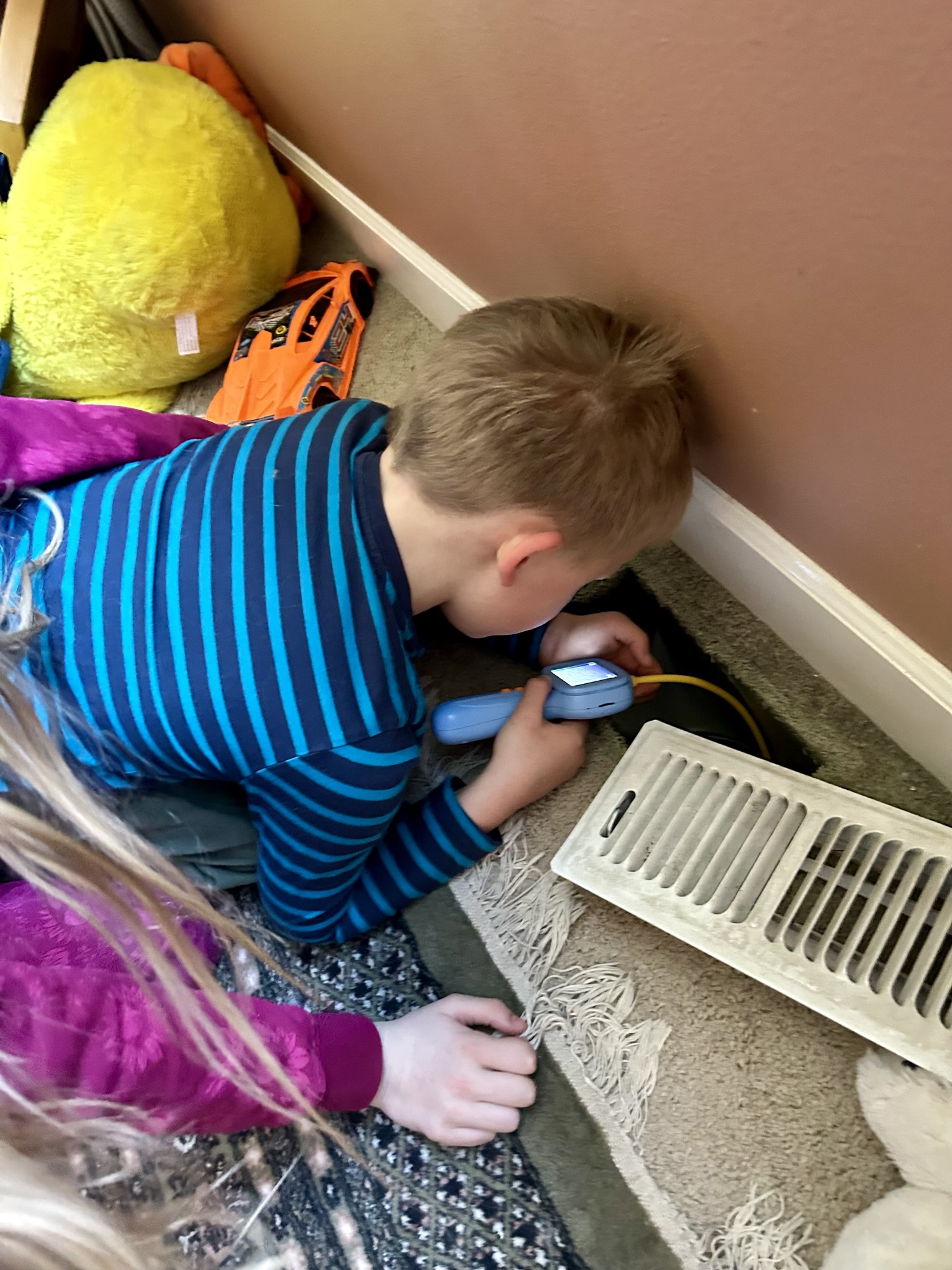 You know when you get a new tool or toy and then all of a sudden, you want to use it to fix everything? Well, this week in pictures is thanks to the endoscope Mr. D got. It’s a camera on the end of a long rod with a screen that displays what it sees. Here are our adventures looking through that lens. Into birdhouses, under the water…
