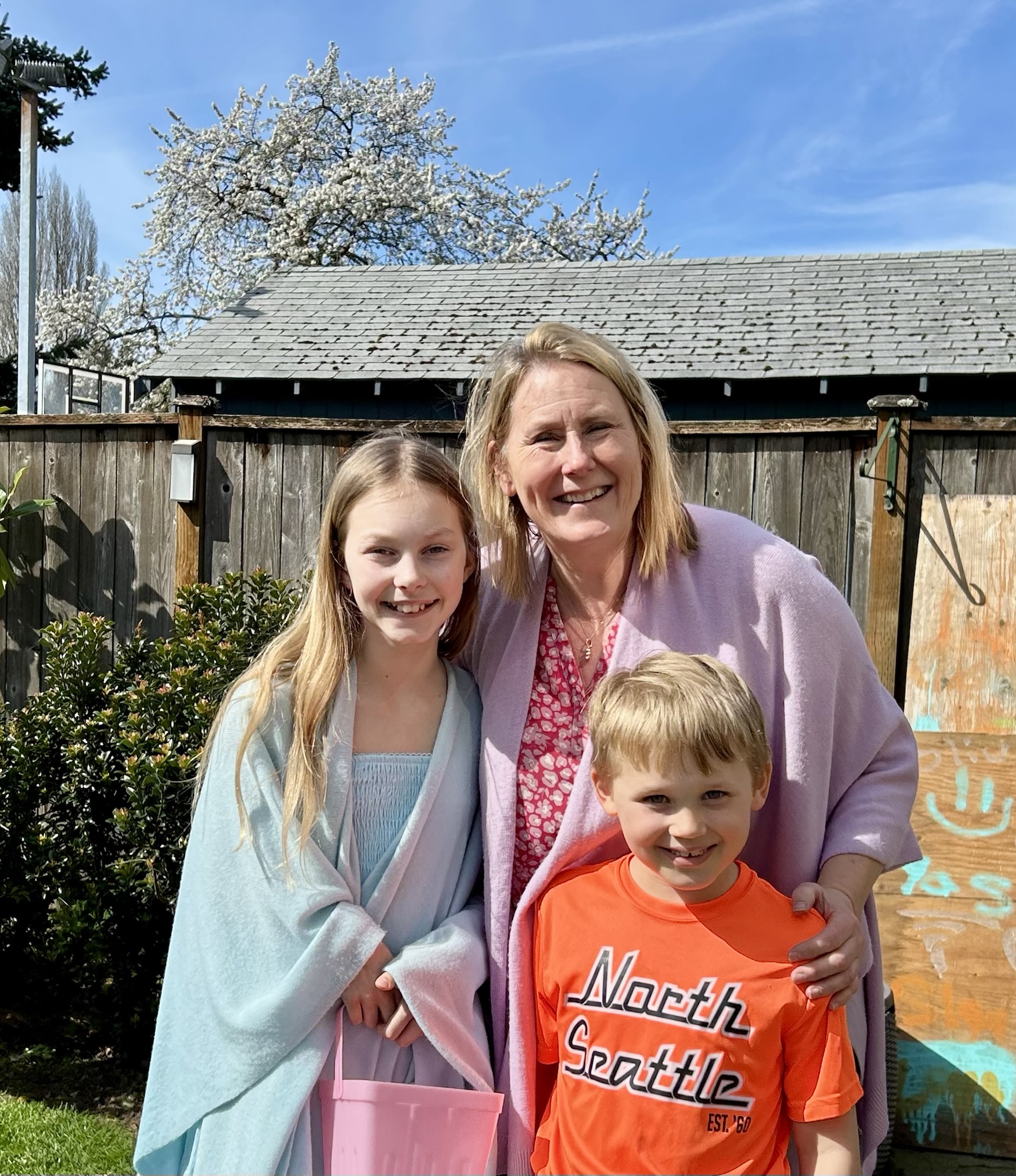 Looks like the kids are getting taller, just like the grass. The are wonderfully glowing and growing, Wynne. The cat’s expression is priceless!