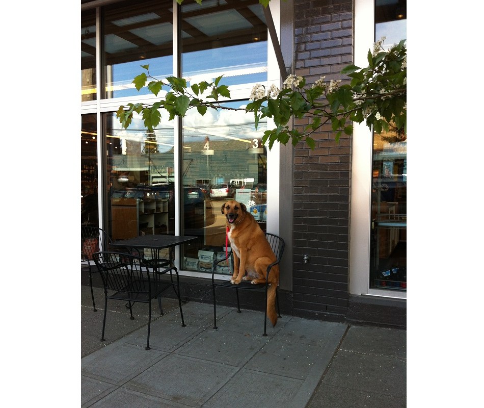 “What’s so great about staying grounded?” is the sign I’d put in this beautiful dog if I knew him. Because he clearly enjoys the view from on high!