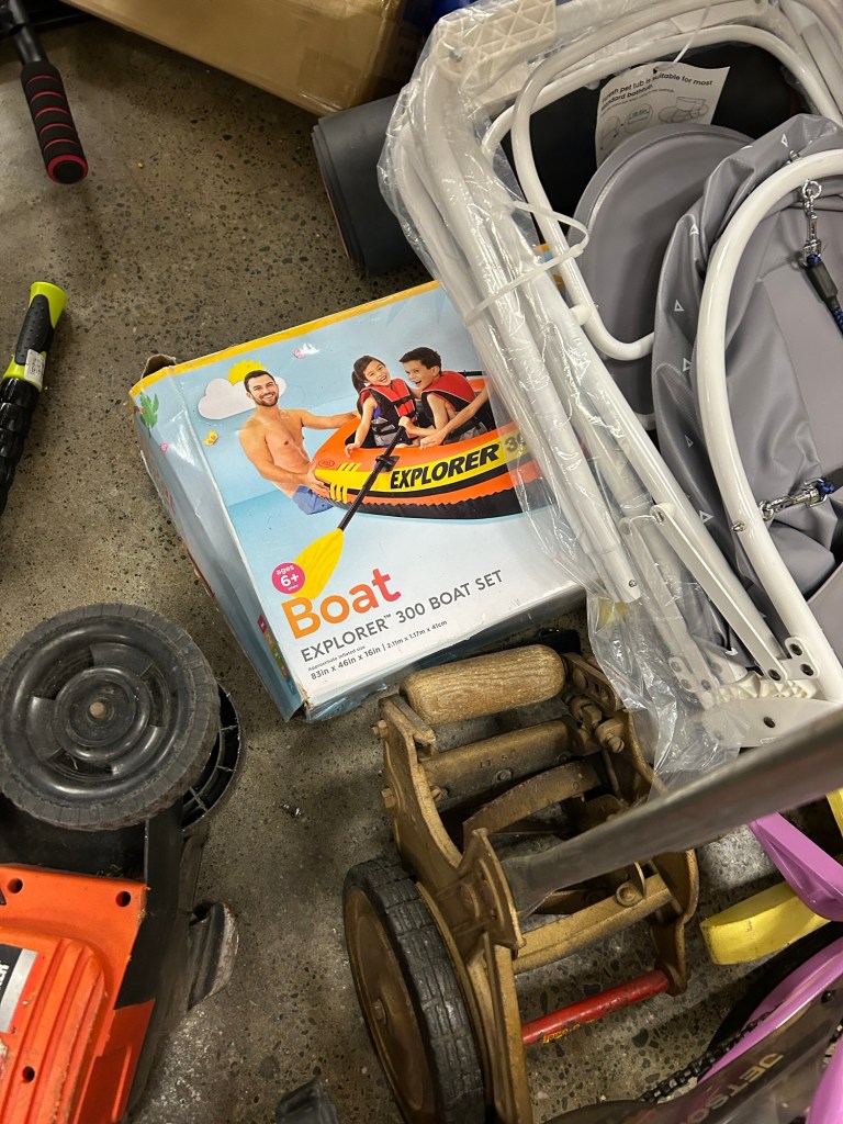 Like on this last visit, when tucked under a washtub for pets and an old lawn mower we found the exact same raft that Eric had. Miss O was so excited and said, “text a picture of it to Eric.”