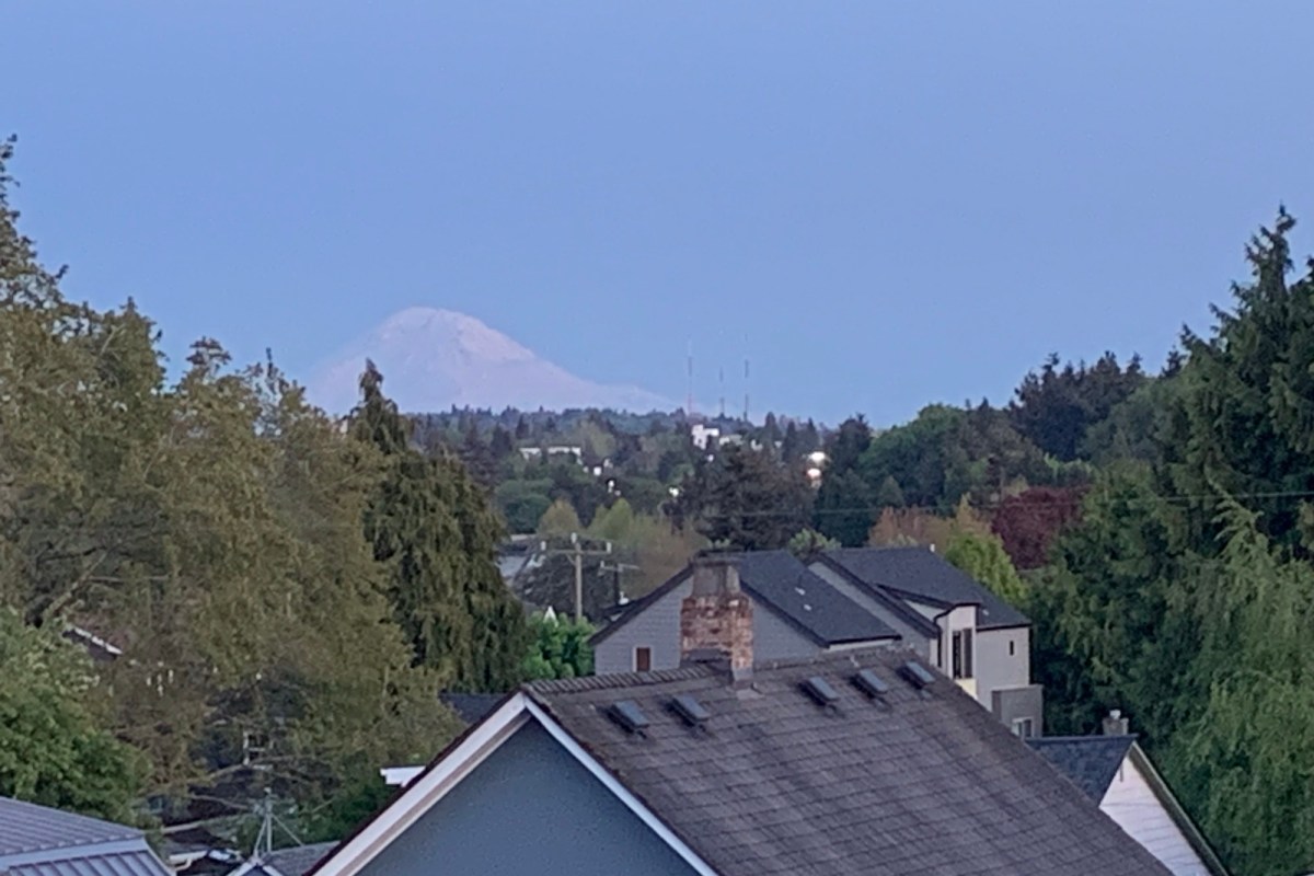 One of the many things I love about living in Seattle is that Mt Rainier looms up from so many different angles just driving down the freeway. (photo credit to Miss O)