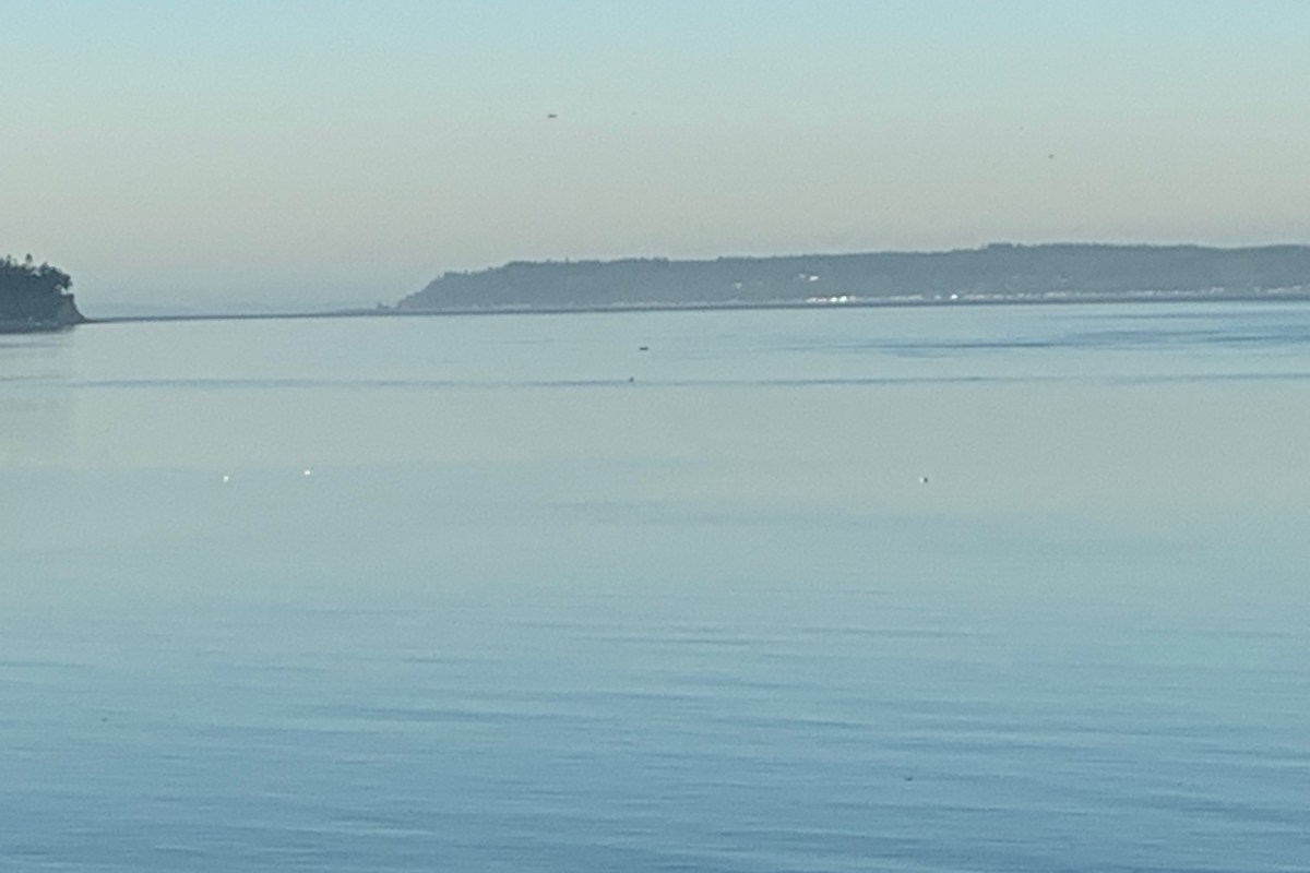 Last summer I was sitting on the porch of a creaky old cabin a block off the beach of Mutiny Bay on Whidbey Island. I’d snuck out of a bed that I was sharing with my daughter for our 2 nights there and through all the rattling doors with a hot cup of tea and sat to meditate. As I sat there, I heard a whale exhale through its blow hole and looked up. I barely caught a glimpse of three whales in the sliver of bay 150 yards away that I could see between the two buildings in front of me. But I heard the distinctly unique sound several more times through the quiet morning air before the whales moved on. It was exhilarating and intimate.