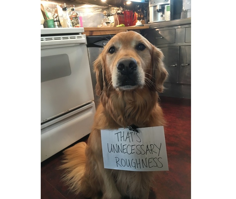 Not sure who’s on offense and who’s on defense but referee Ruby thinks someone has been sacked! Happy Super Bowl Sunday!!