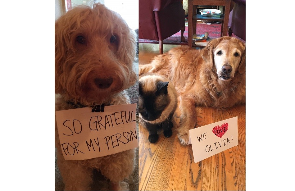 Can you feel the love tonight? Leeloo, Juniper, Zola, Lucy and Dakota (clockwise from top right corner) express their true feelings for their amazing owners!